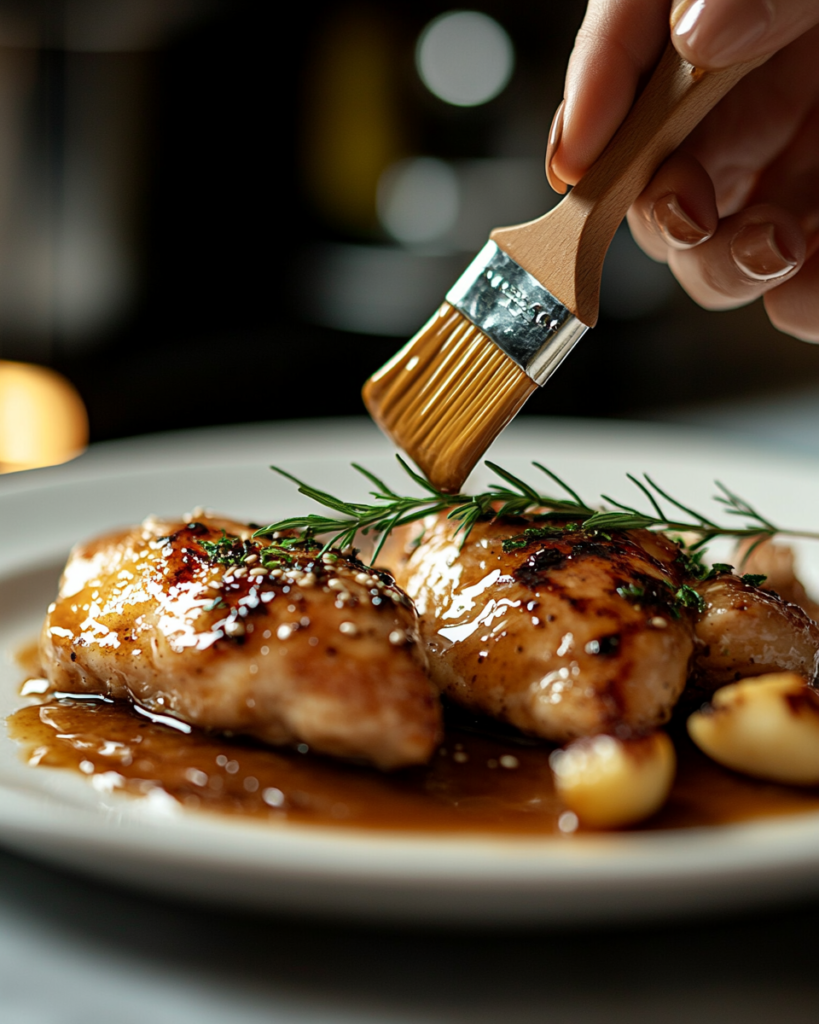 Spoon or brush about half of the sauce over the chicken thighs, making sure each piece is evenly coated. Reserve the remaining sauce for later use. This layering step helps build flavor without overwhelming the chicken at the start.