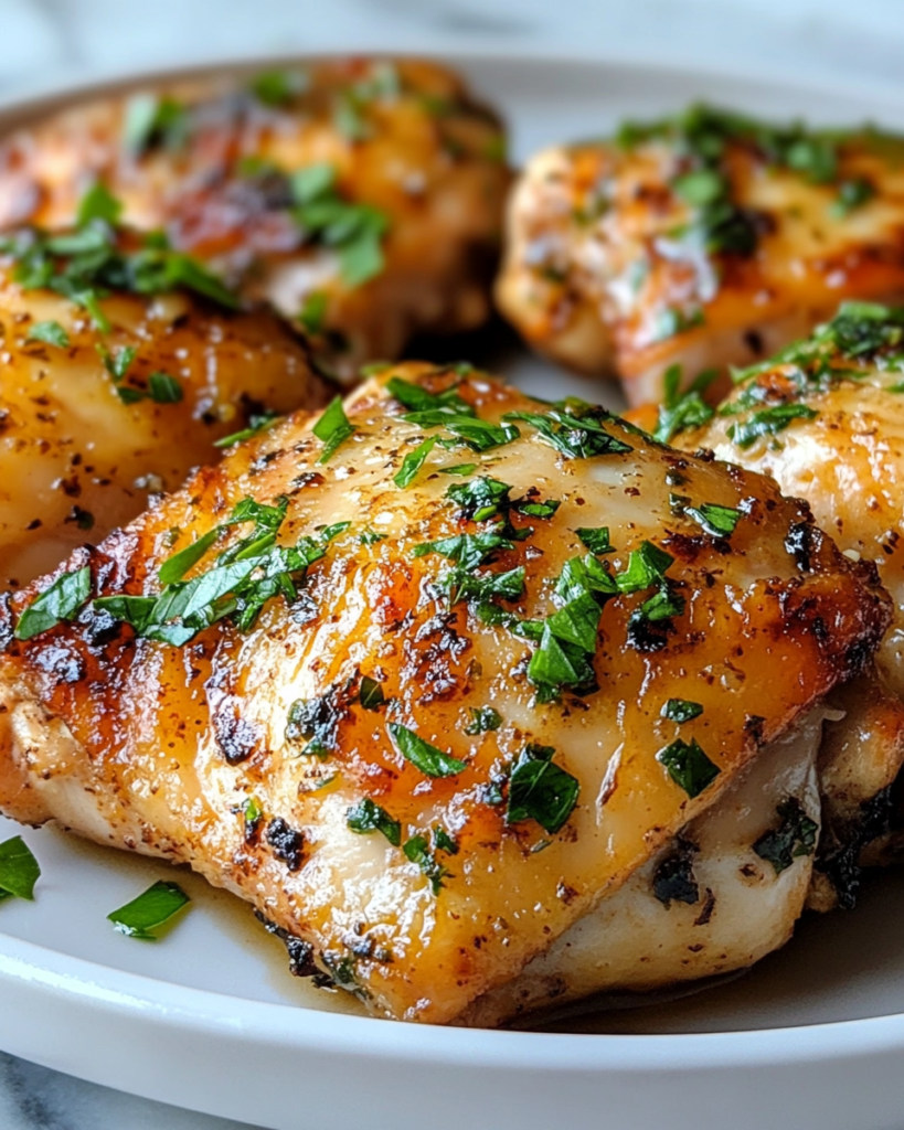 Garlic Herb Baked Chicken Thighs bring together roasted poultry, garlic infusion, and dried herb seasoning in a single oven-baked preparation. The result is tender chicken with crisp skin and a fragrant surface coating that develops during roasting.