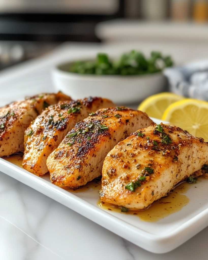 Air fryer chicken prepared with minimal oil produces a crisp exterior while keeping the interior tender and juicy. This Healthy Air Fryer Chicken recipe focuses on controlled seasoning, balanced moisture, and precise heat circulation inside the air fryer basket. The result is chicken with a firm bite and a light, crunchy coating without deep frying.