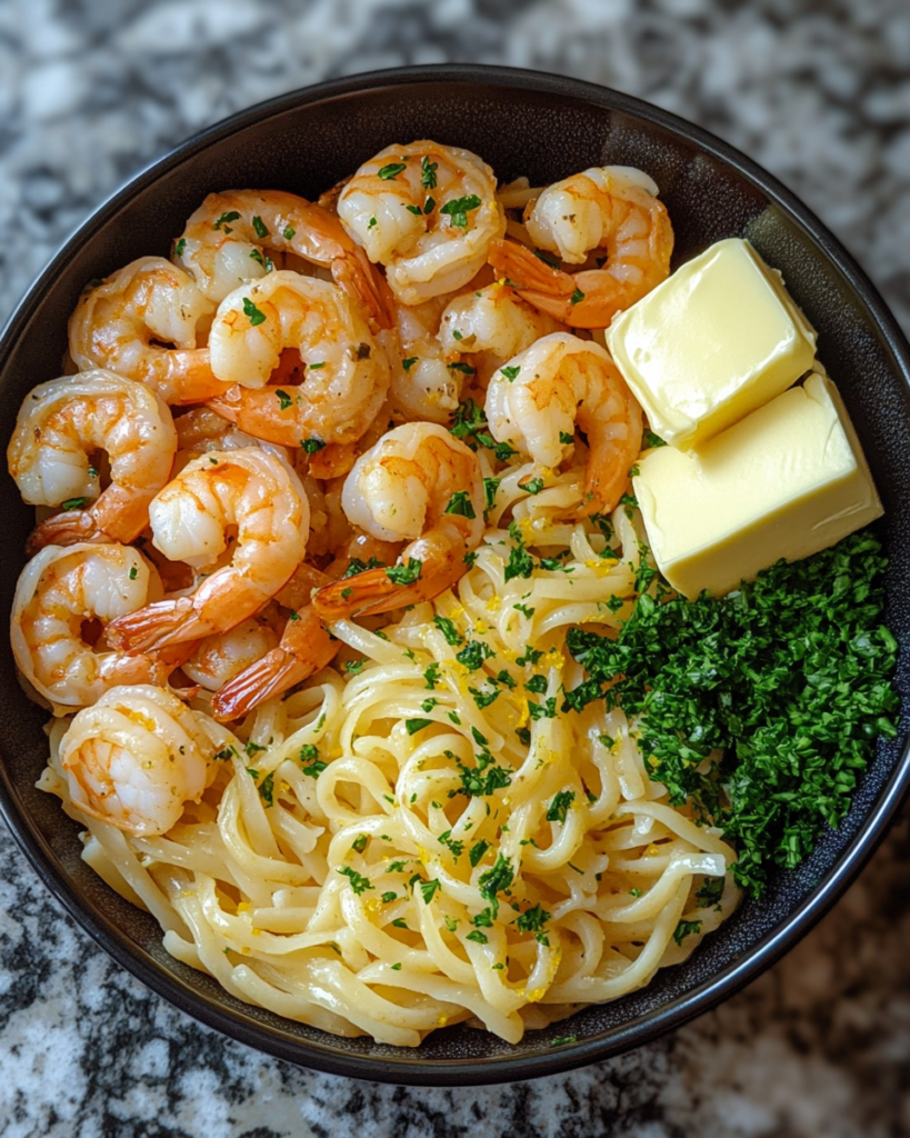 This dish relies on a short list of ingredients that work together to create a layered, balanced flavor. Shrimp is the main protein, offering a tender bite that cooks quickly and absorbs the garlic-lemon sauce. Medium or large shrimp both work well, as long as they are peeled and deveined for even cooking.