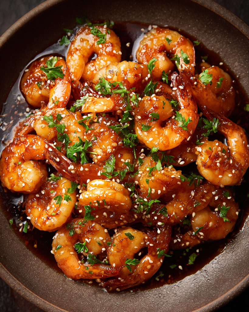 The ingredients work together to create a dish that is sweet, savory, and slightly tangy, with a glossy, sticky finish that makes the shrimp irresistible. Substitutions can include maple syrup for honey, tamari for soy sauce, or lime juice instead of vinegar for a brighter flavor.