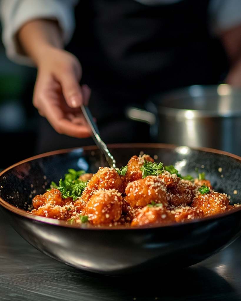The coating mix usually combines flour and cornstarch. Flour gives structure while cornstarch adds a lighter crunch that helps create a crisp surface. Seasonings such as paprika, garlic powder, onion powder, salt, and black pepper build a savory base that flavors every layer of the chicken.
